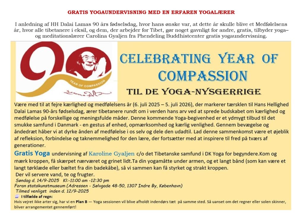 Arrangører: Dansk Selskab for Tibetansk Kultur, Amnestys event-gruppe, Studerende for et Frit Tibet og Støttekomiteen for Tibet.